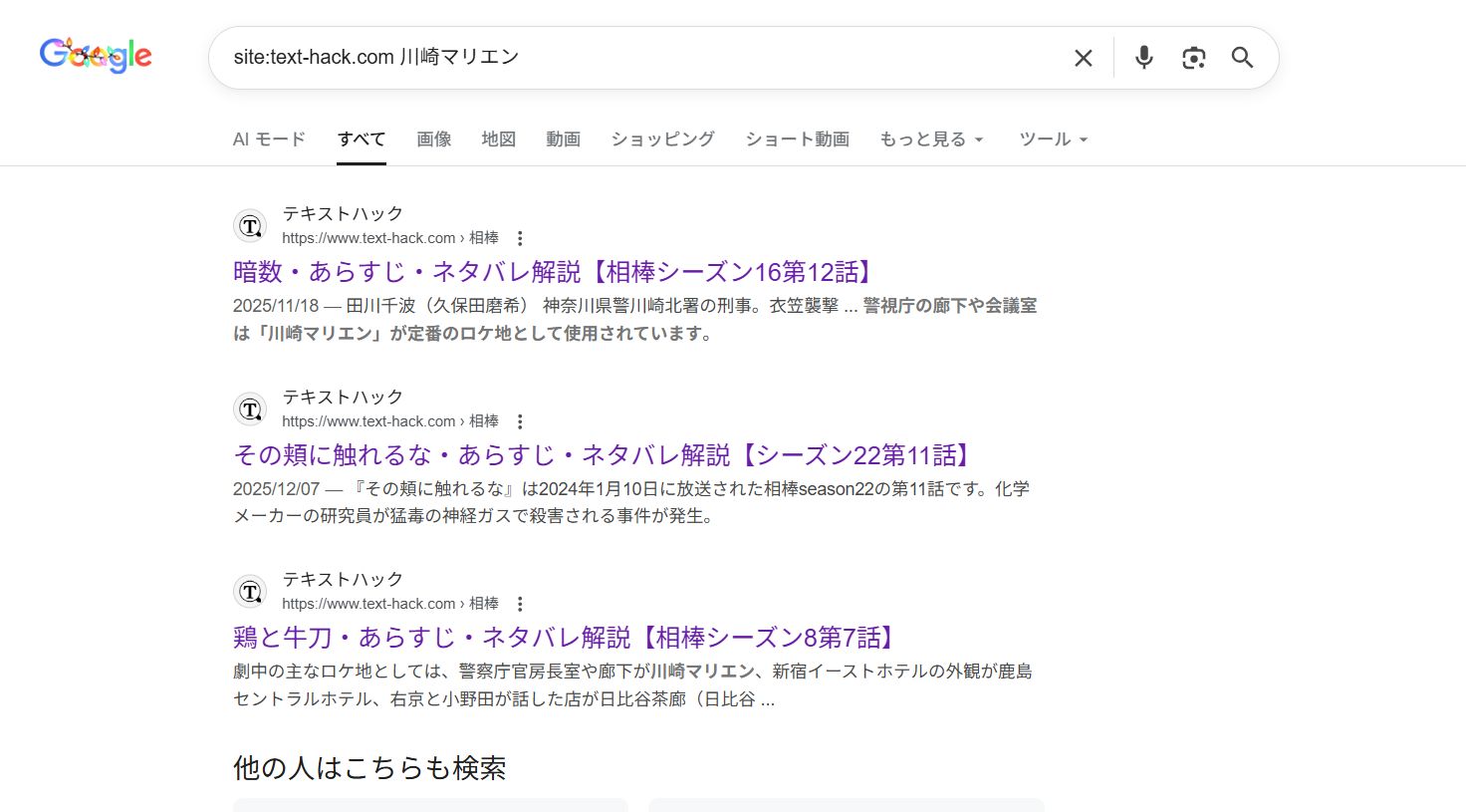 相棒では川崎マリエンがよく使われていますが、Googoleの検索結果によればテキストハックさんではロケ地として3回記載されています。