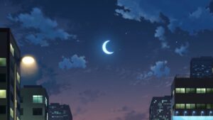 夕焼け空に三日月が浮かんでいる、ということだと思うのですが気になる点が。