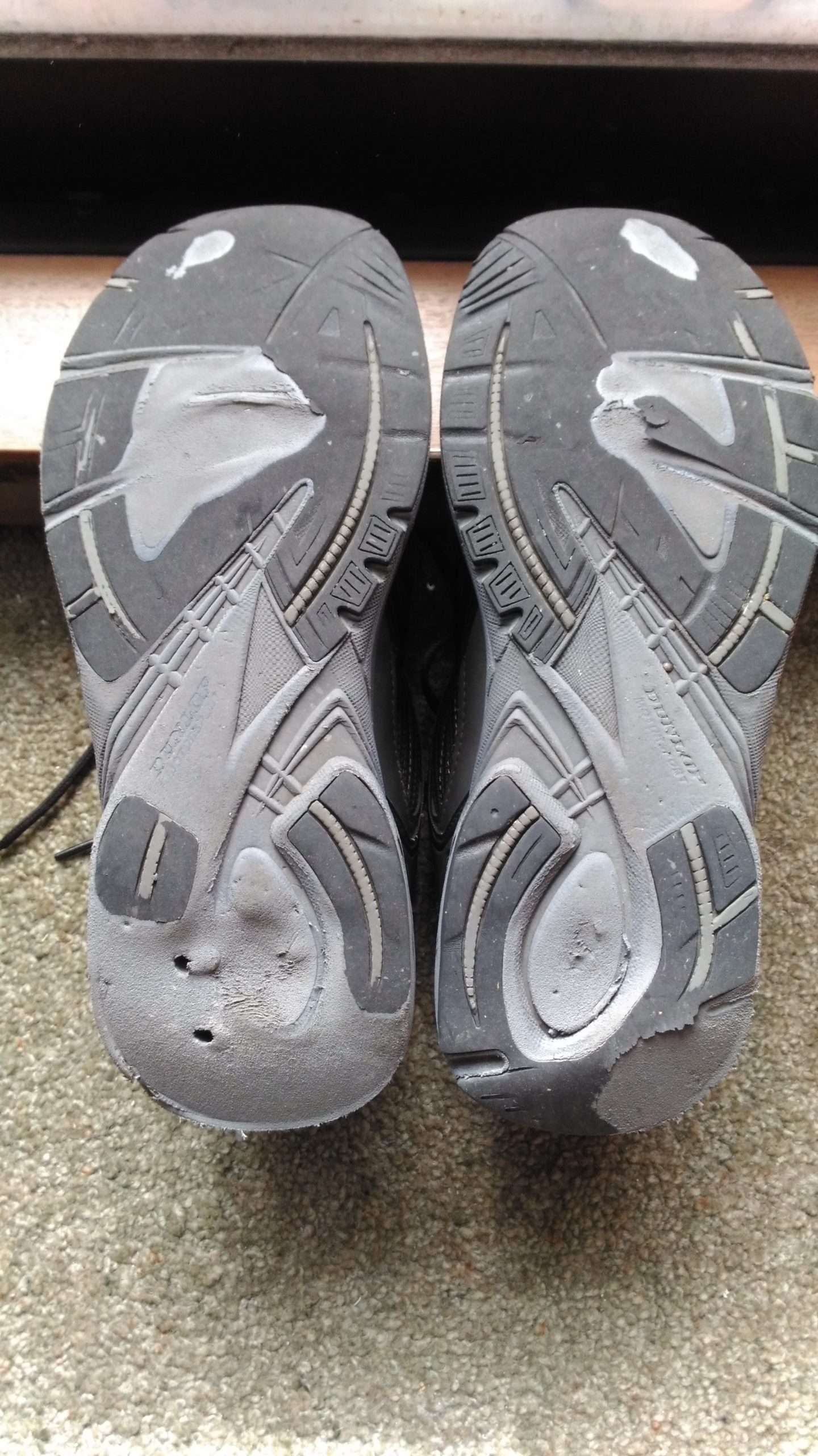 塗る。基本的には穴の開いた所とかかとのすり減った所、と決めてましたが、余ったのでかかと以外のすり減った所にも塗りました。